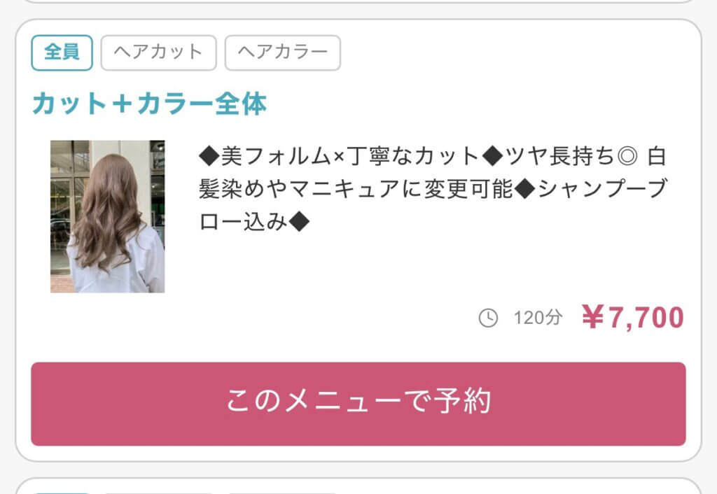 | その他 | スマート支払いOK、ポイント利用OK、即時予約OK、メンズにもオススメ | ||