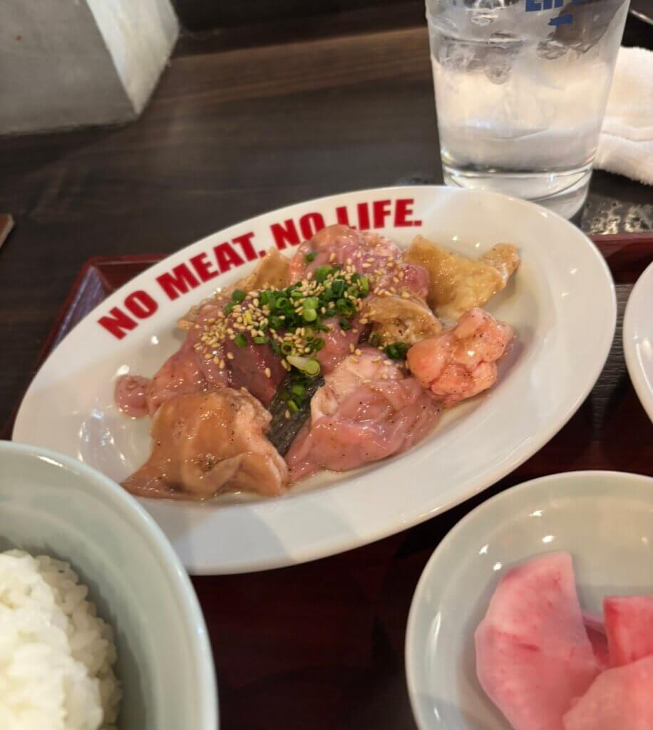昼休憩に訪れた筆者、【焼肉はやばいか・・】と躊躇したものの大好きなホルモンの文字を見たら我慢できず注文してしまいました。隣では1人で昼のみしているお姉さんがいてうらやましかった・・。笑